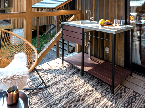 水に強く、耐候性に優れたウレタン樹脂の木調と黒のフレームがお洒落感を醸します。
