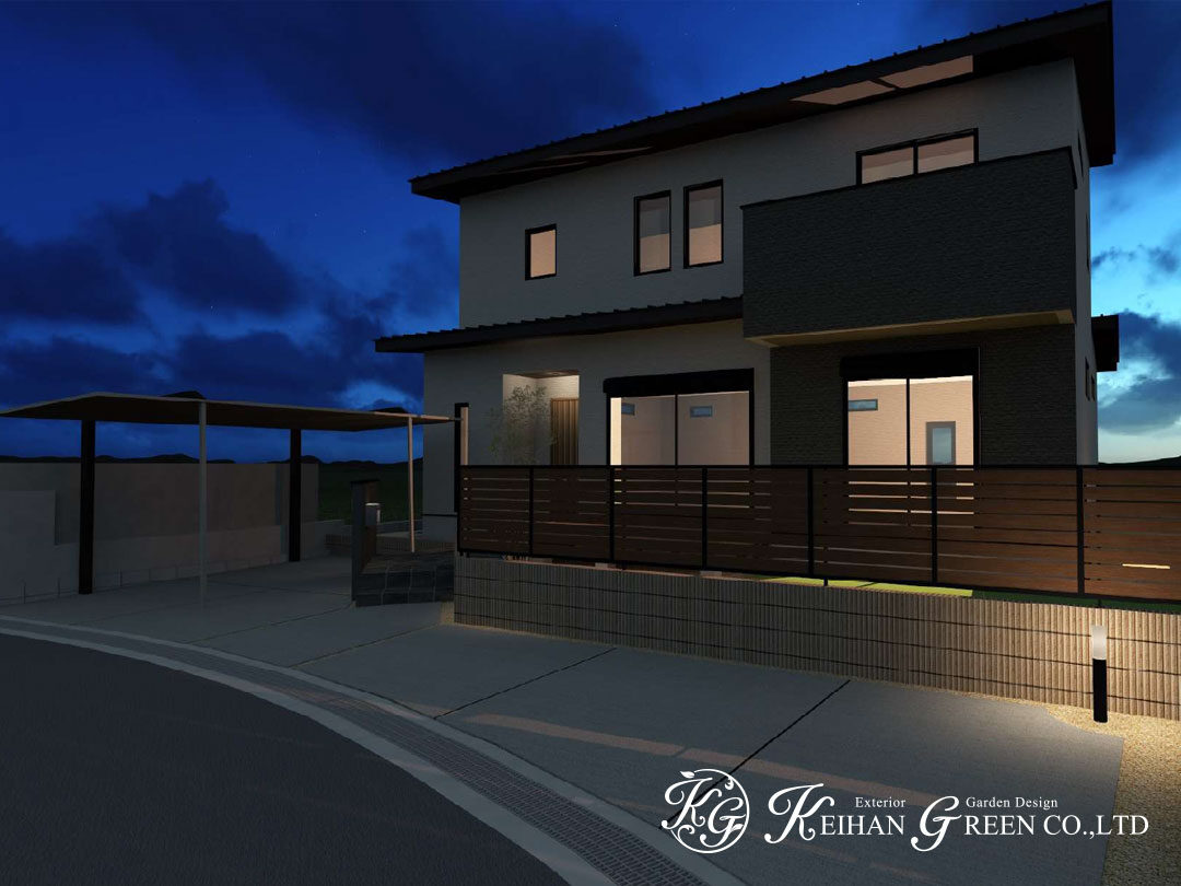 安全性と景観を両立した、昼夜問わず快適に過ごせるエクステリアです。