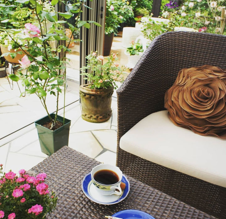 家族が留守の時に、テラスでひとり、ゆったりとすごすティータイムも優雅でいいですね。