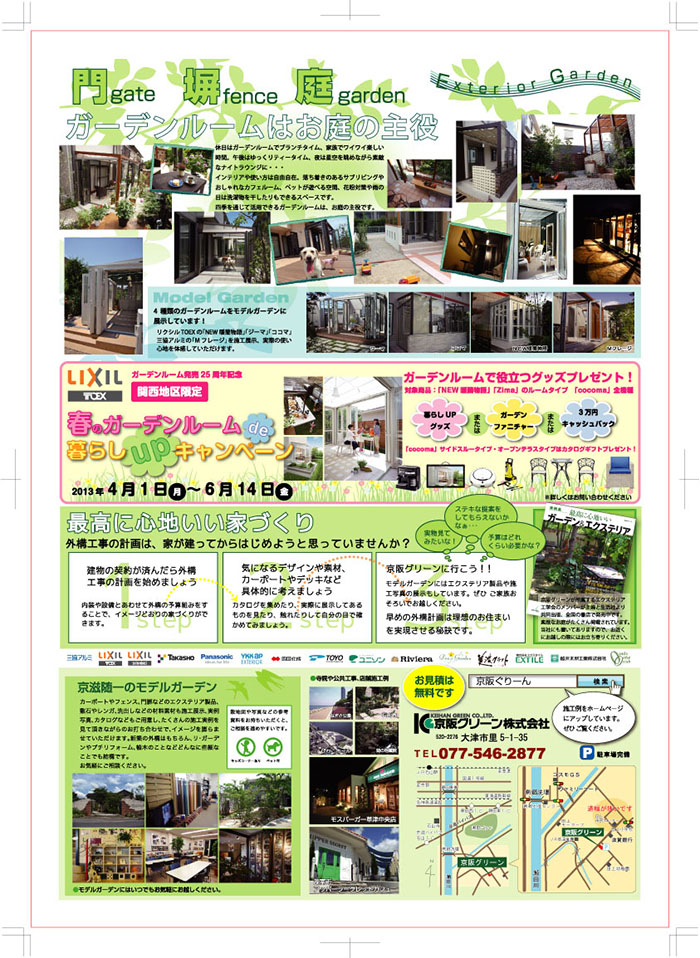 新築外構からリ・ガーデンまで、プロのデザイナーがあなたの想いをかたちにします。 春のガーデンルームde暮らしアップフェアも開催中! ぜひご覧ください。