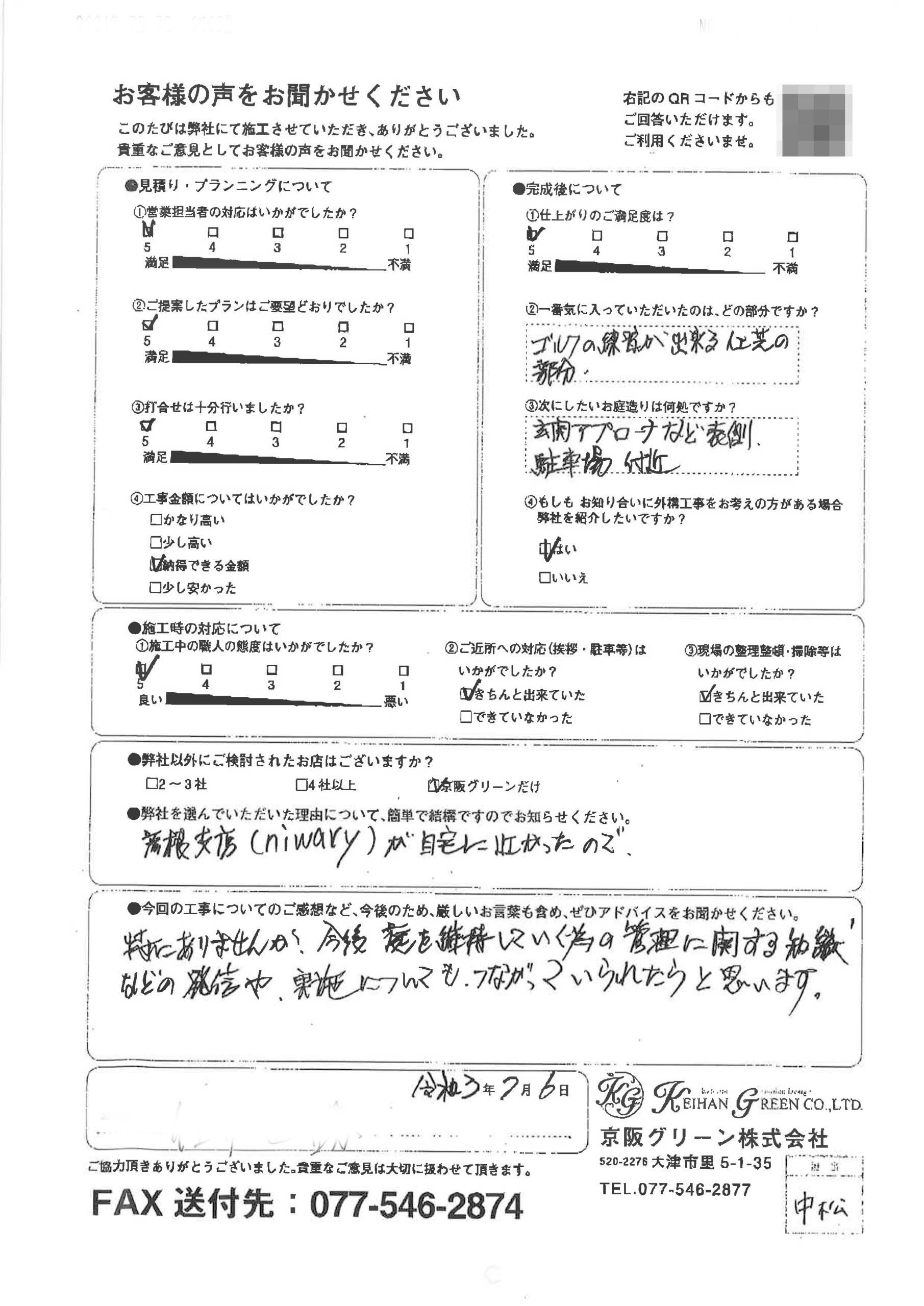 特にありませんが、今後、庭を維持していくための管理に関する知識などの発信や実施についても