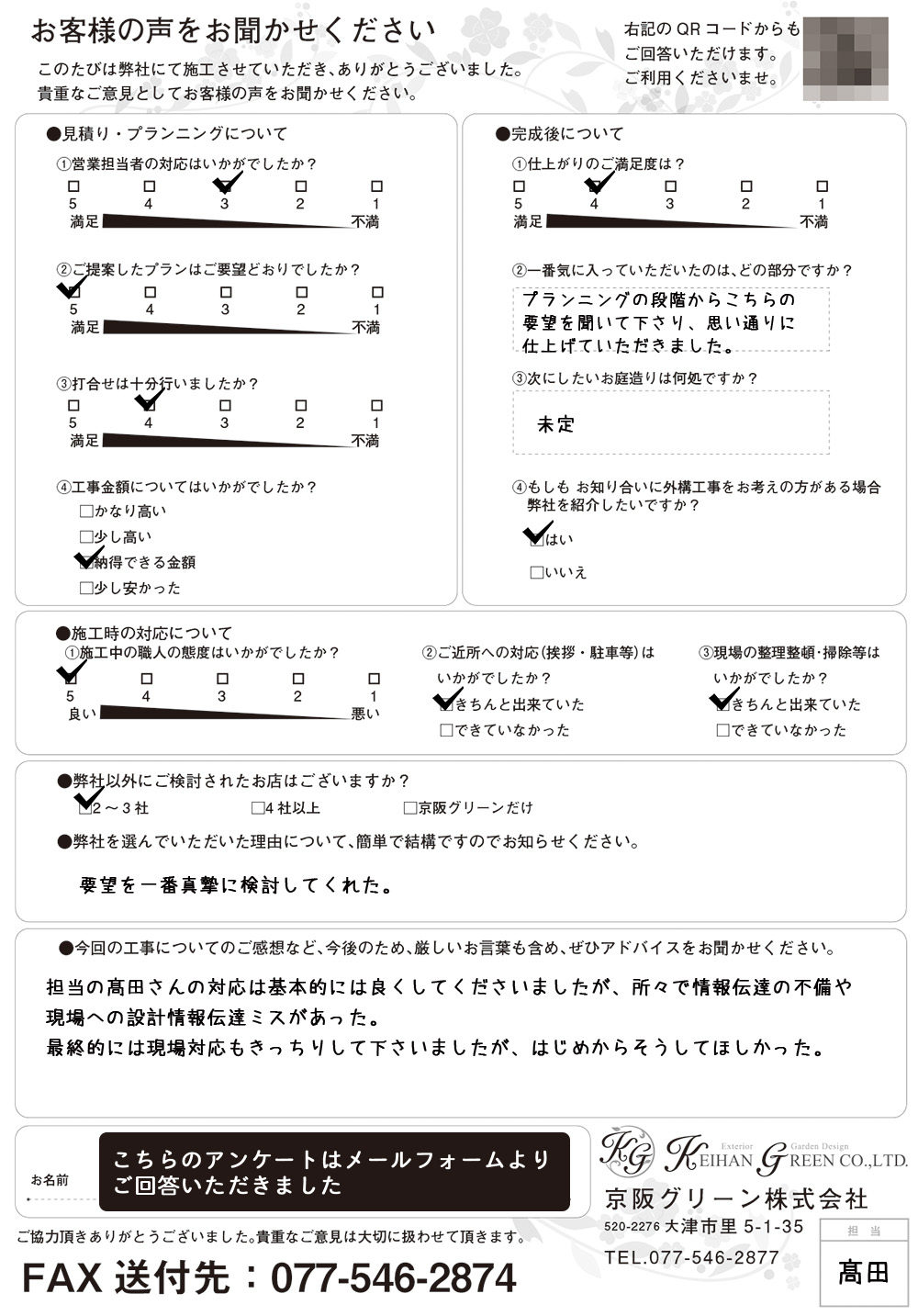 京阪グリーン様にはいつもお願いしたいと思っておりましたが、わたくしも自営をしておりましたので、京阪様には申し訳なく思っておりました。