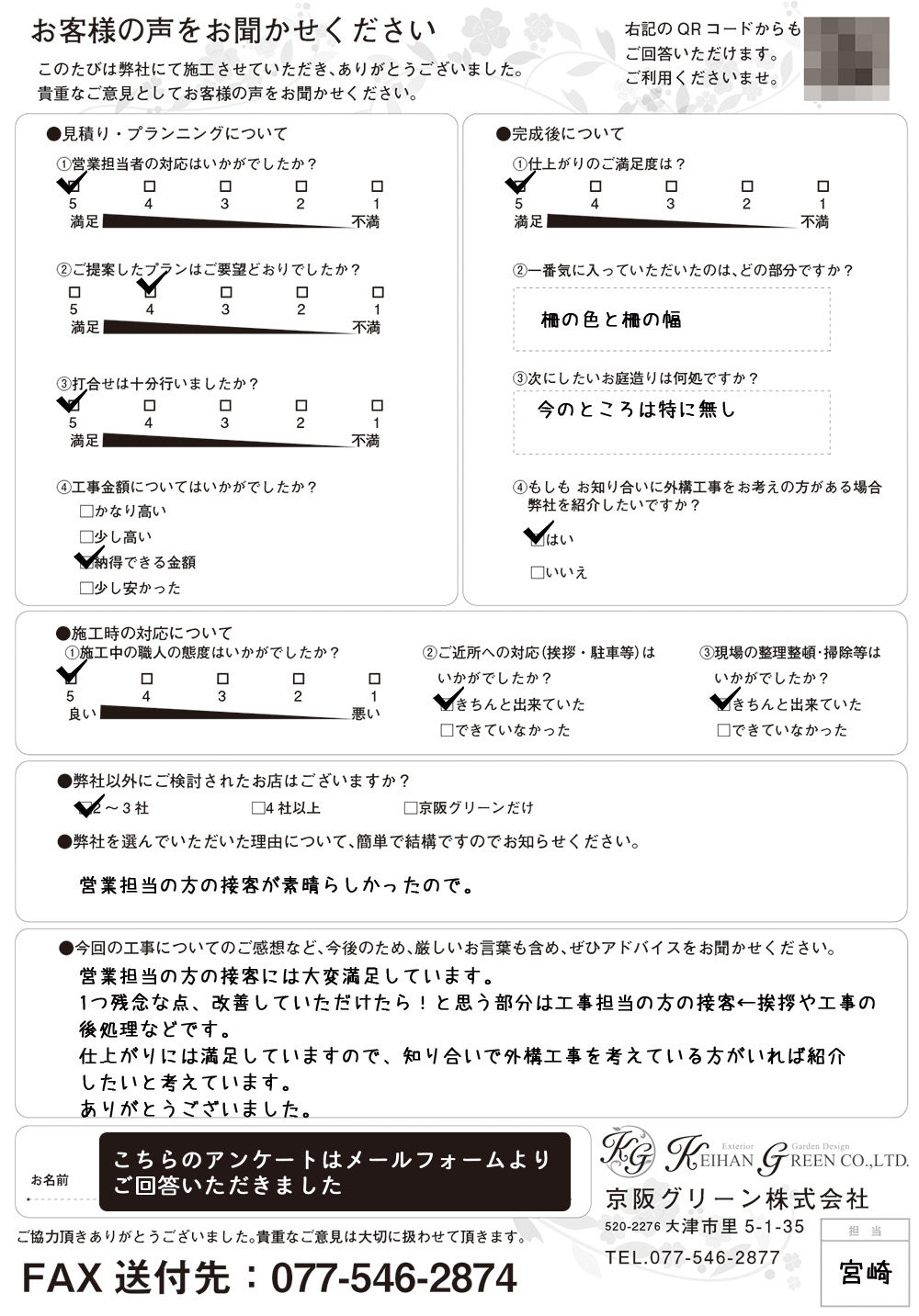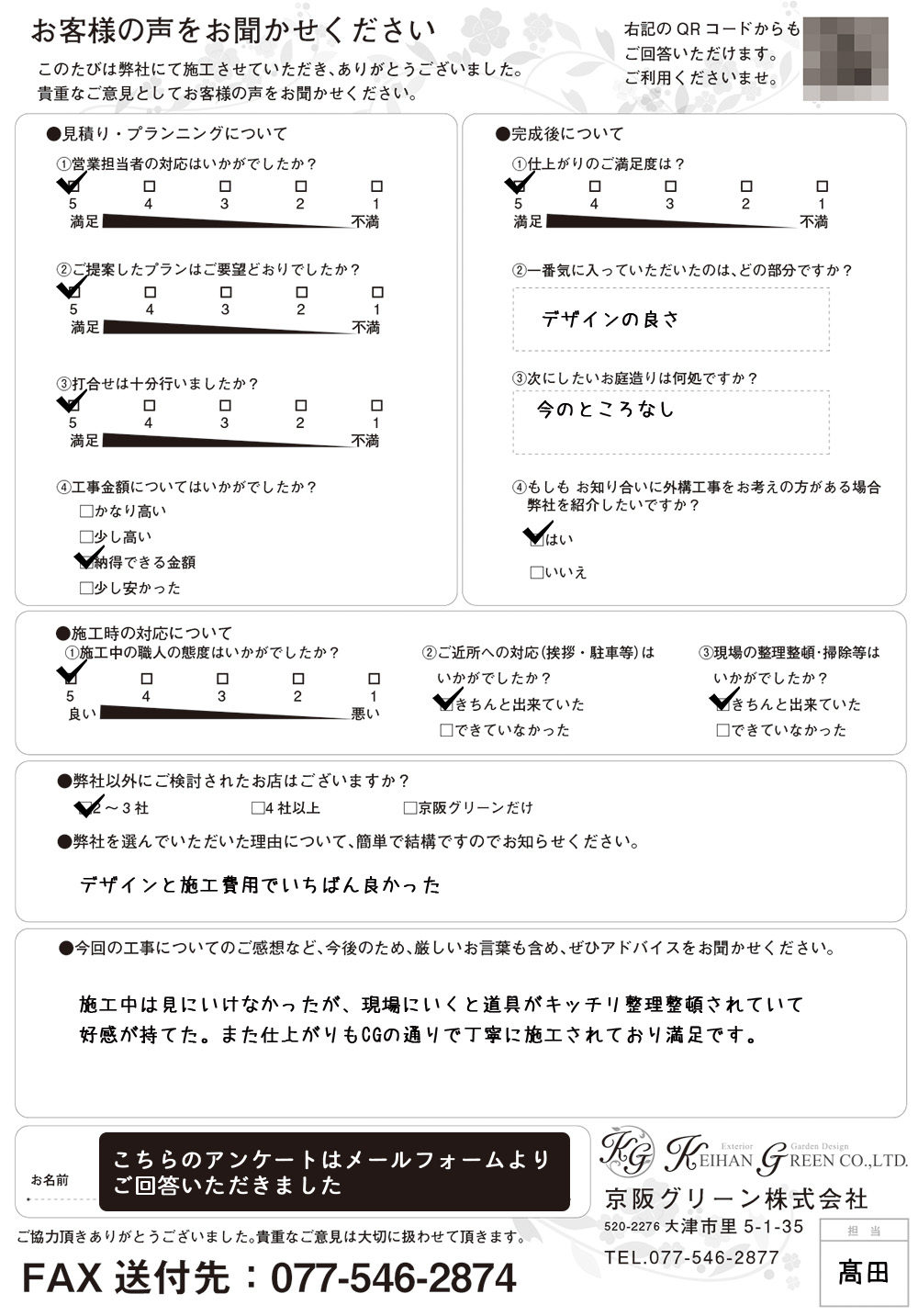 ご担当者様の対応、プランニングや工事金額などすべての面で大満足しました。