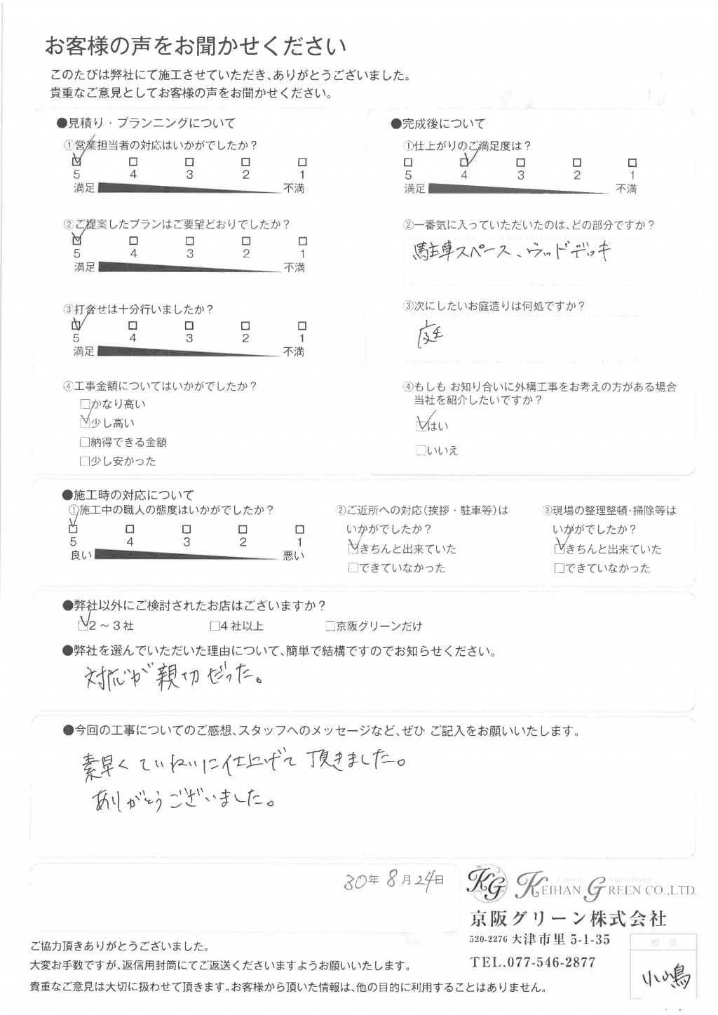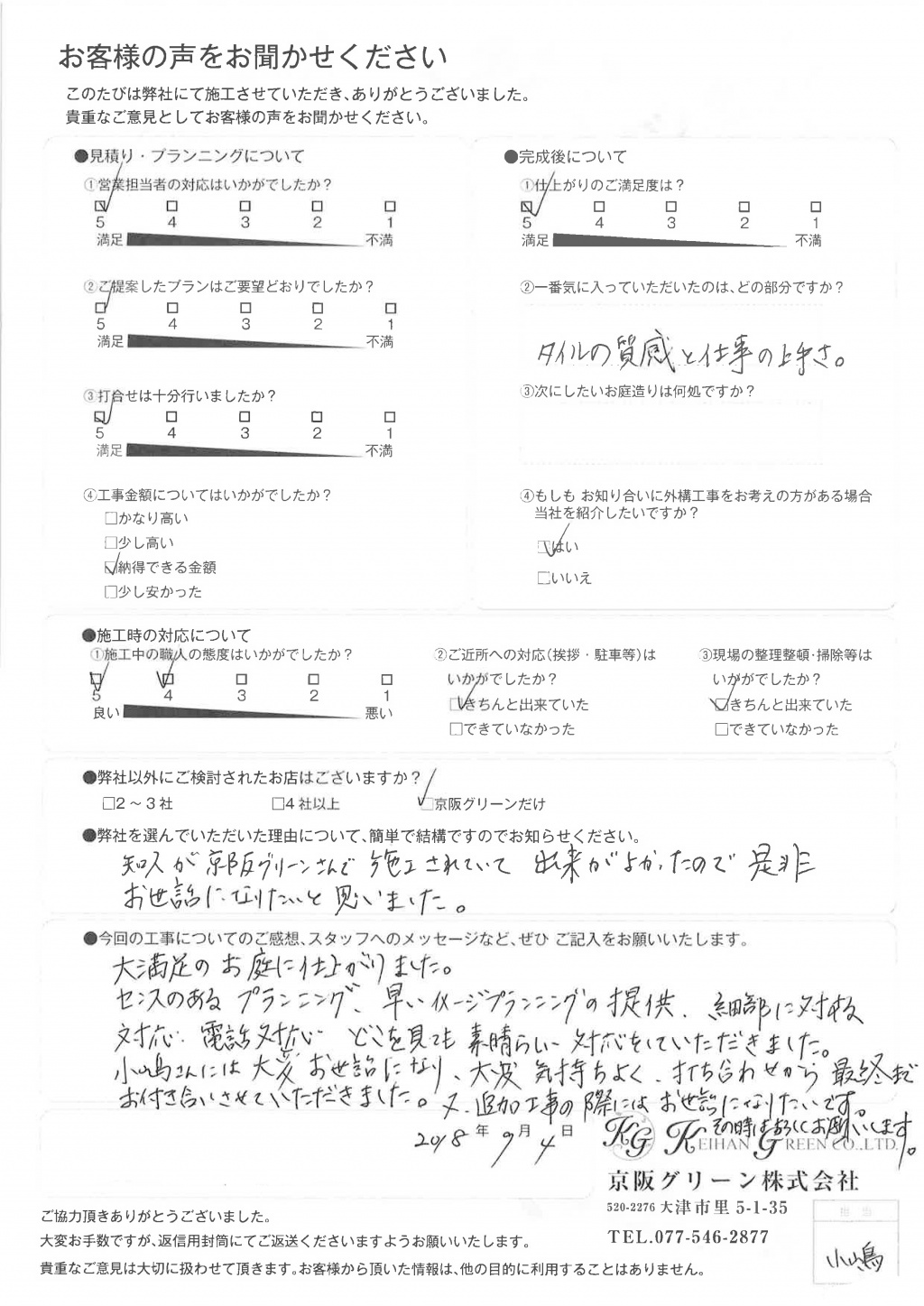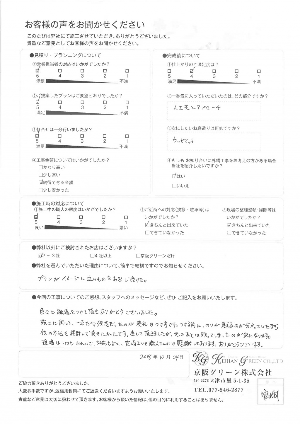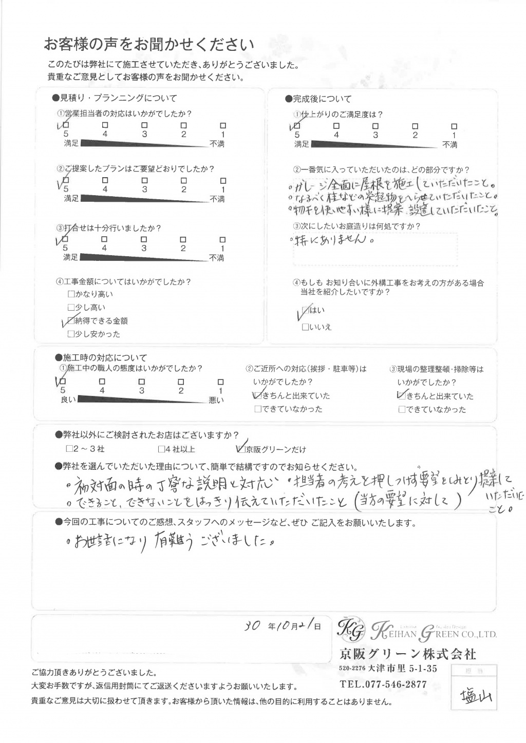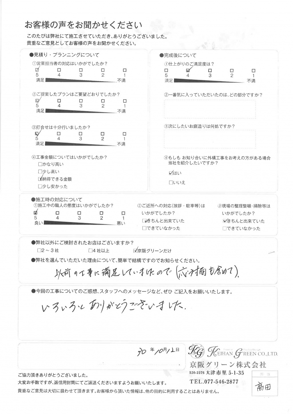 又、追加工事の際にはお世話になりたいです。その時はよろしくお願いします。