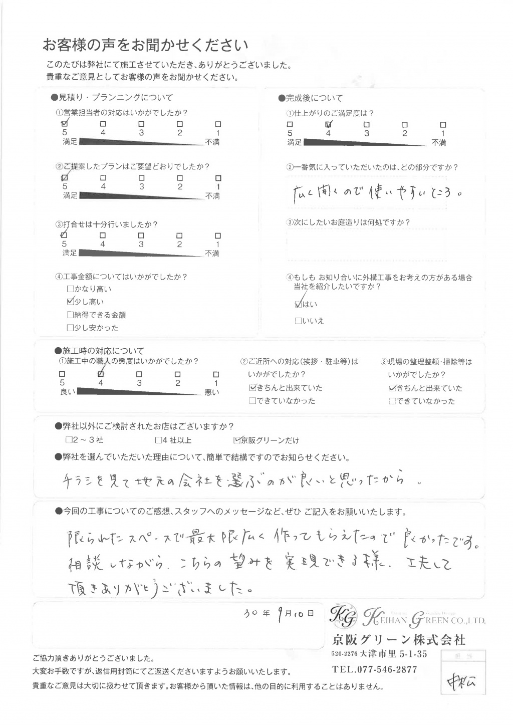 相談しながら、こちらの望みを実現できる様工夫して頂きありがとうございました。