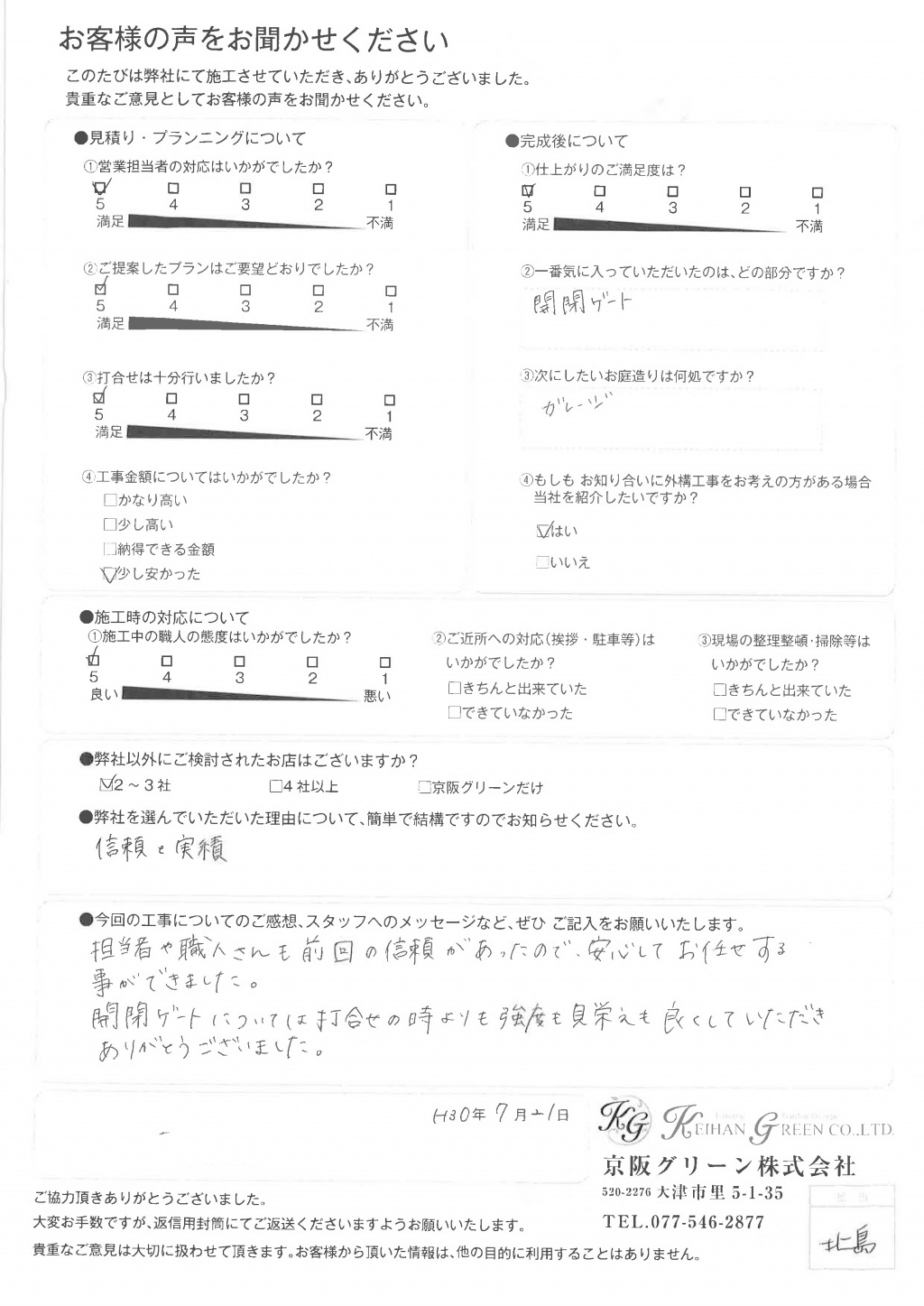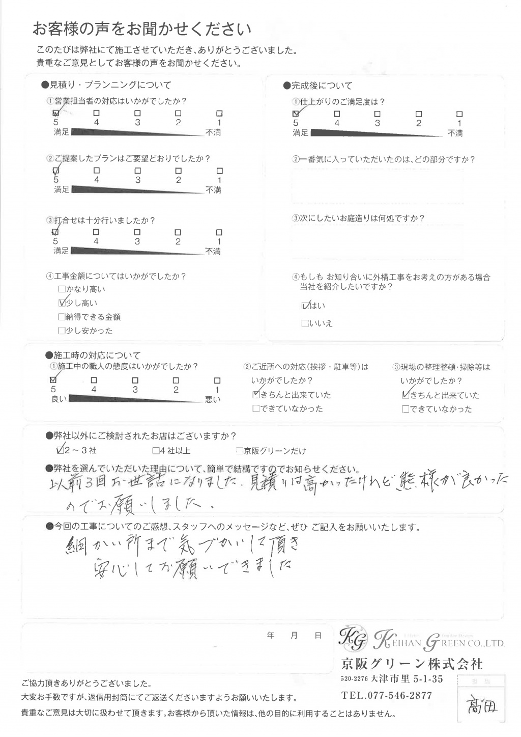 また次回 外構工事を行う際にもお願いしたいと思います。本当にありがとうございました。
