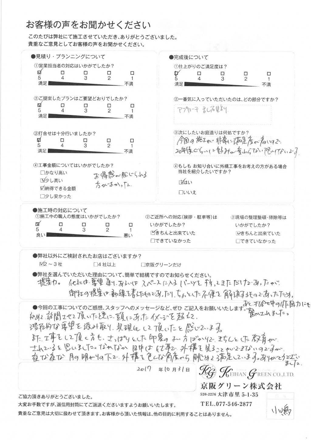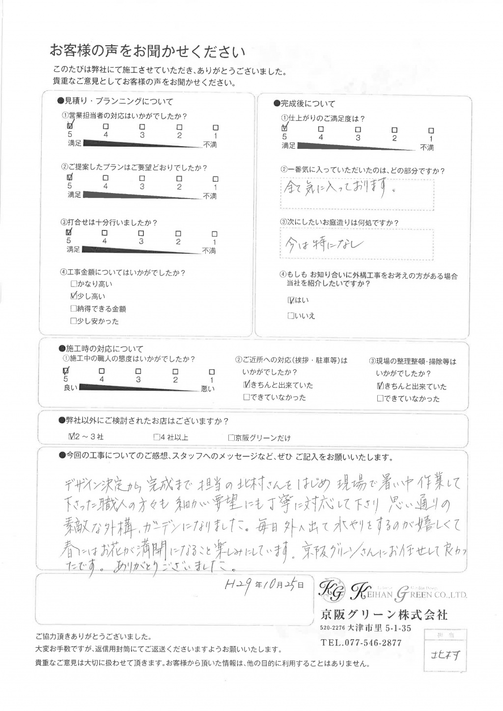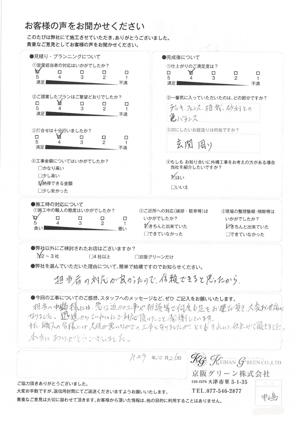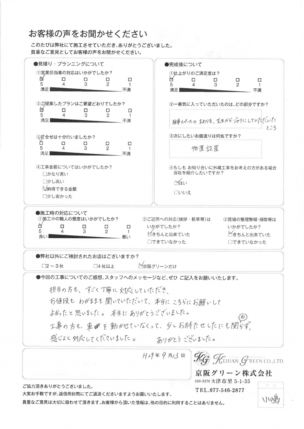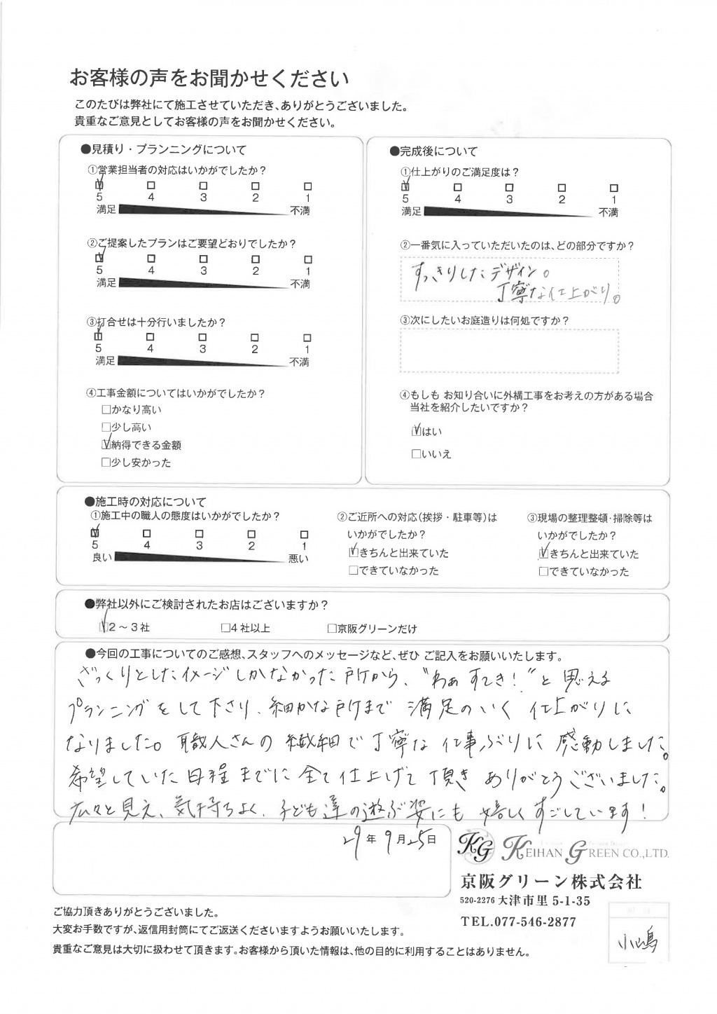 京阪グリーンさんにお任せして良かったです。
