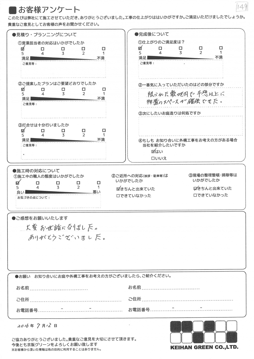 外構工事の方にも大変お世話になり、ありがとうございました。