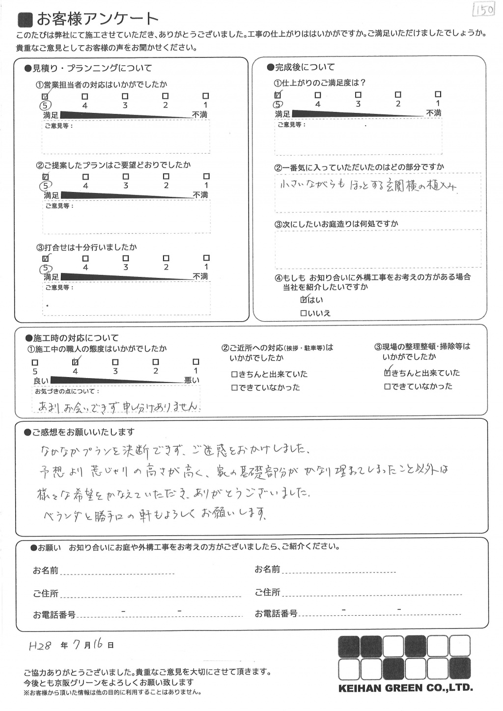 また 花壇の木が一部枯れてしまった時も、すぐにとりかえていただきありがとうございました。