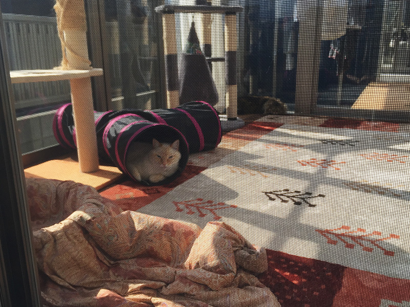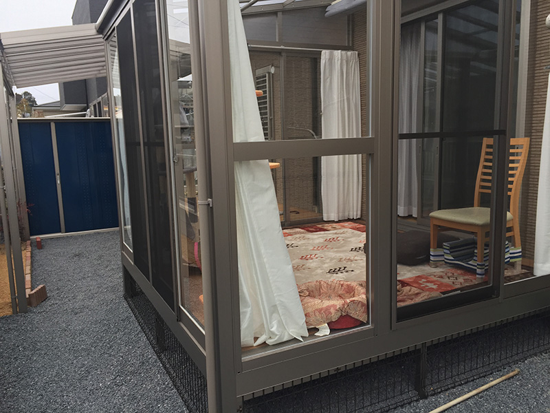 お家の中で、猫ちゃんたちのスペースも限られたものでしたが、リクシルのサンルーム サニージュを設置。猫ちゃんたちがゆっくりと遊べるスペースができました。
