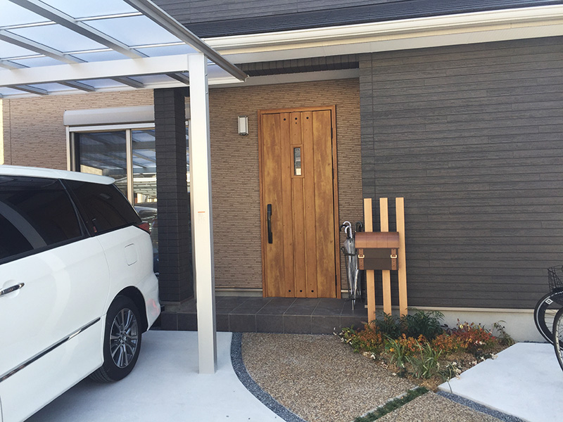 手を付けられていなかった外構をご計画。門柱、カーポート、アプローチをデザインしました。