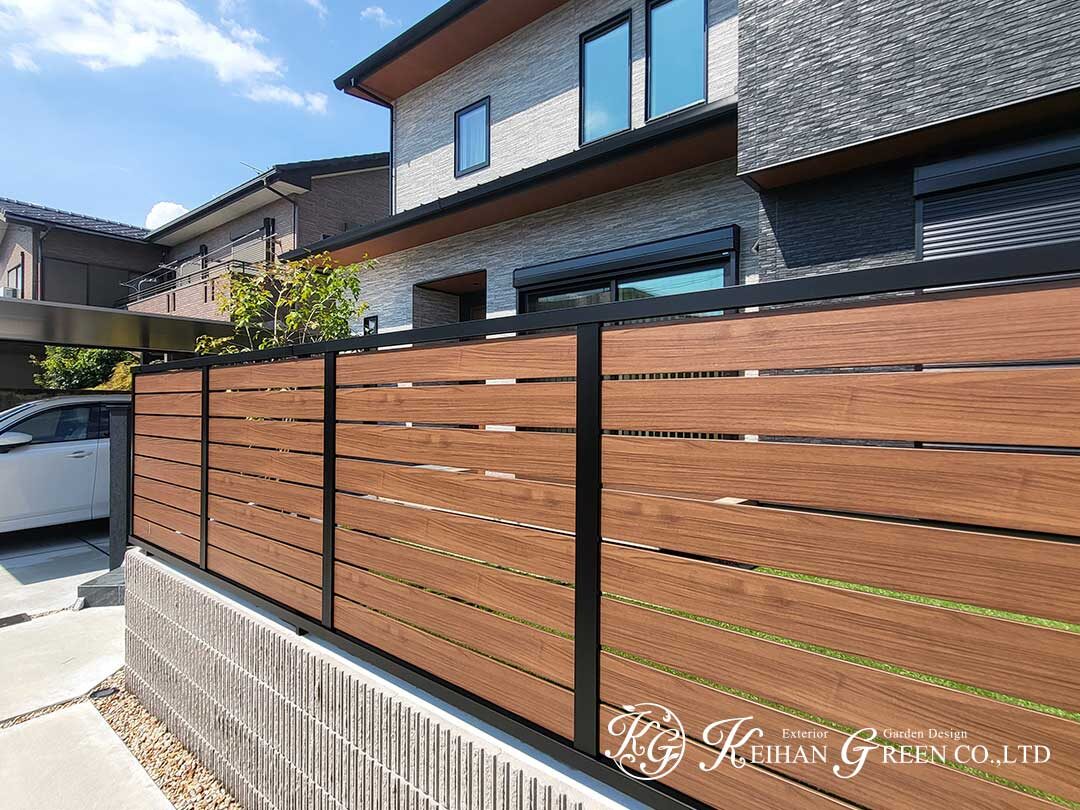 敷地の外周には木調フェンスを設置。