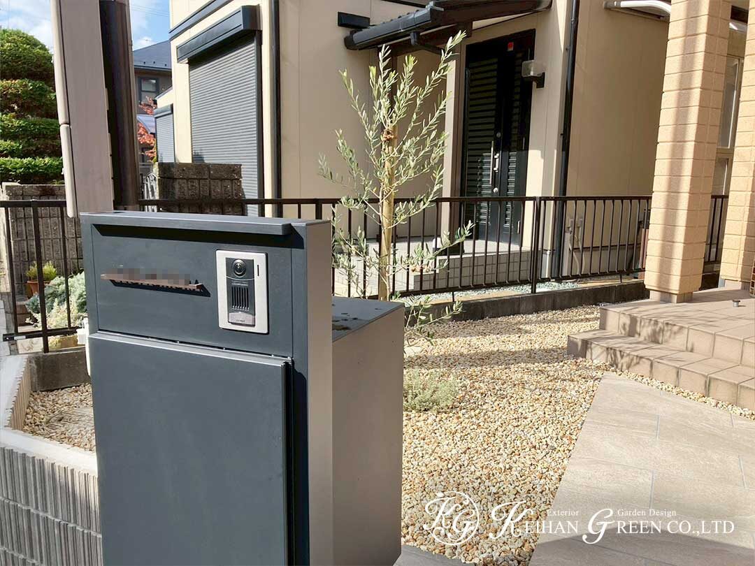 門まわりの主役は、ナスタの「Nasta Box +POST」門柱ユニットタイプ。