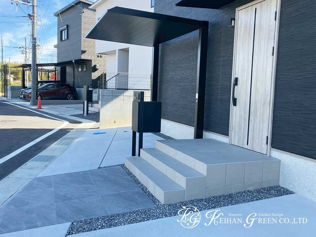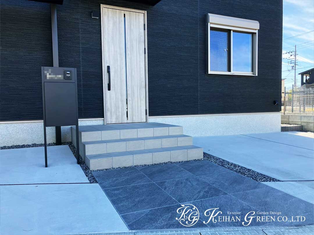 大判タイルで引き締めたアプローチ