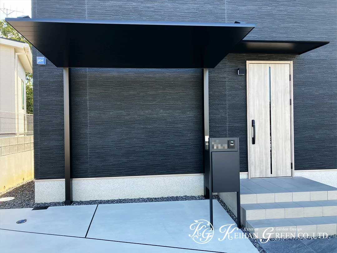 サイクルポートやポストまわり、アプローチの足元など、必要な要素だけをきちんと整えることで、建物のかっこよさをそのまま引き立てる新築外構です。
