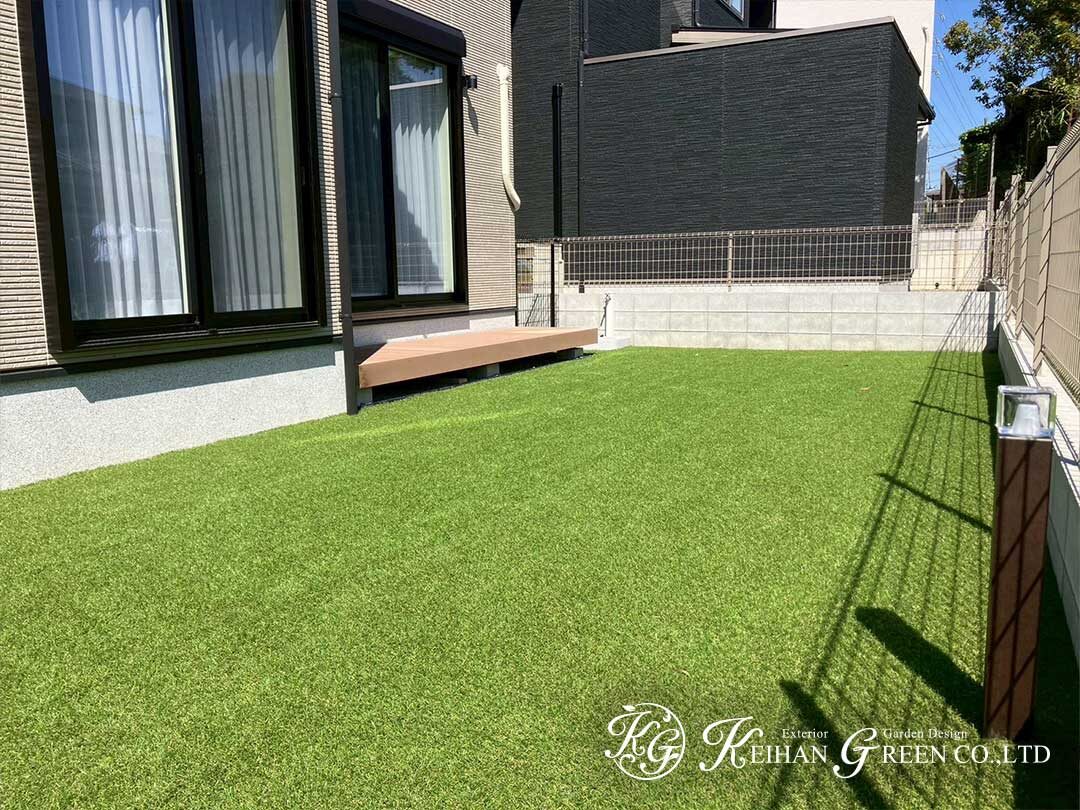 お庭には人工芝を敷き、明るく開放的な空間に仕上げました。