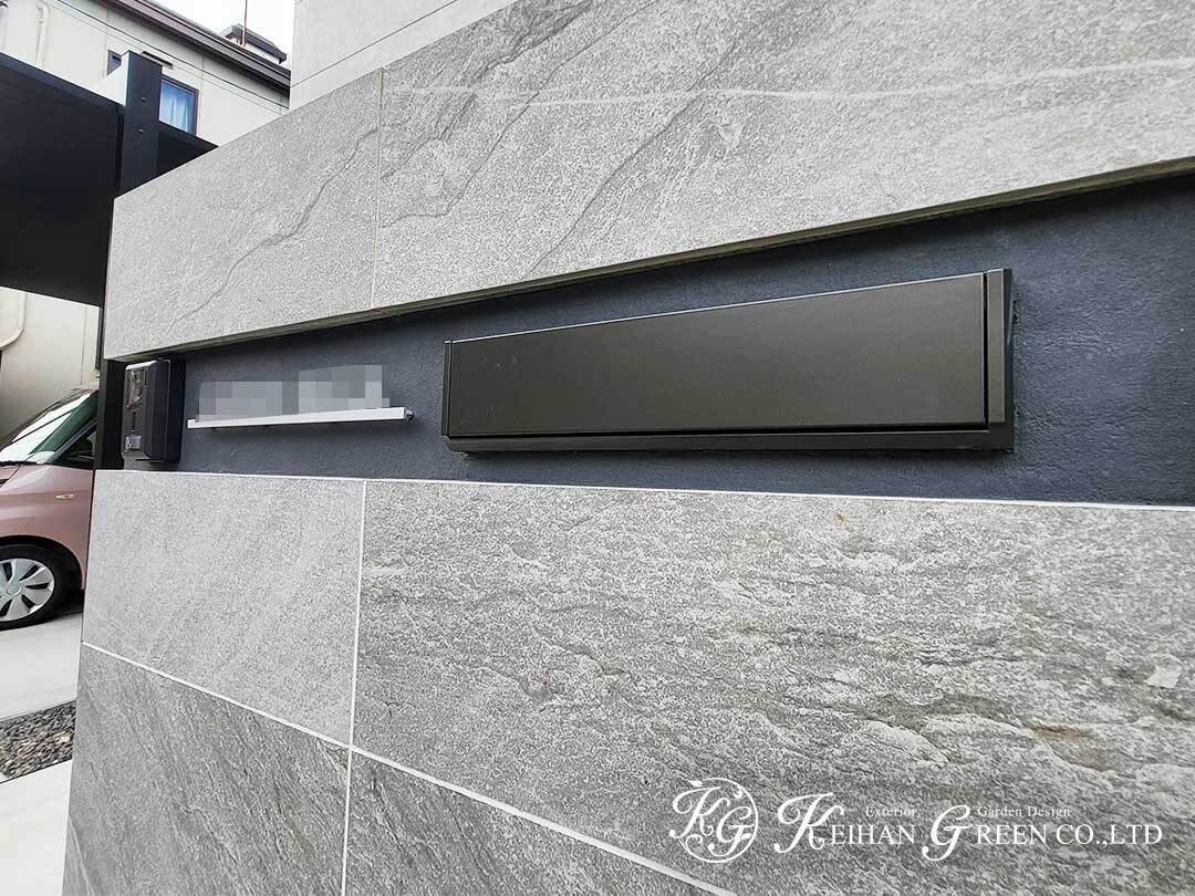 建物の凛としたグレーに合わせ、外構も直線基調でまとめました。