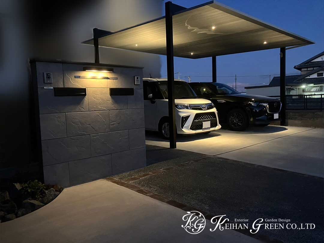 夜を美しく演出する、スタイリッシュなカーポート