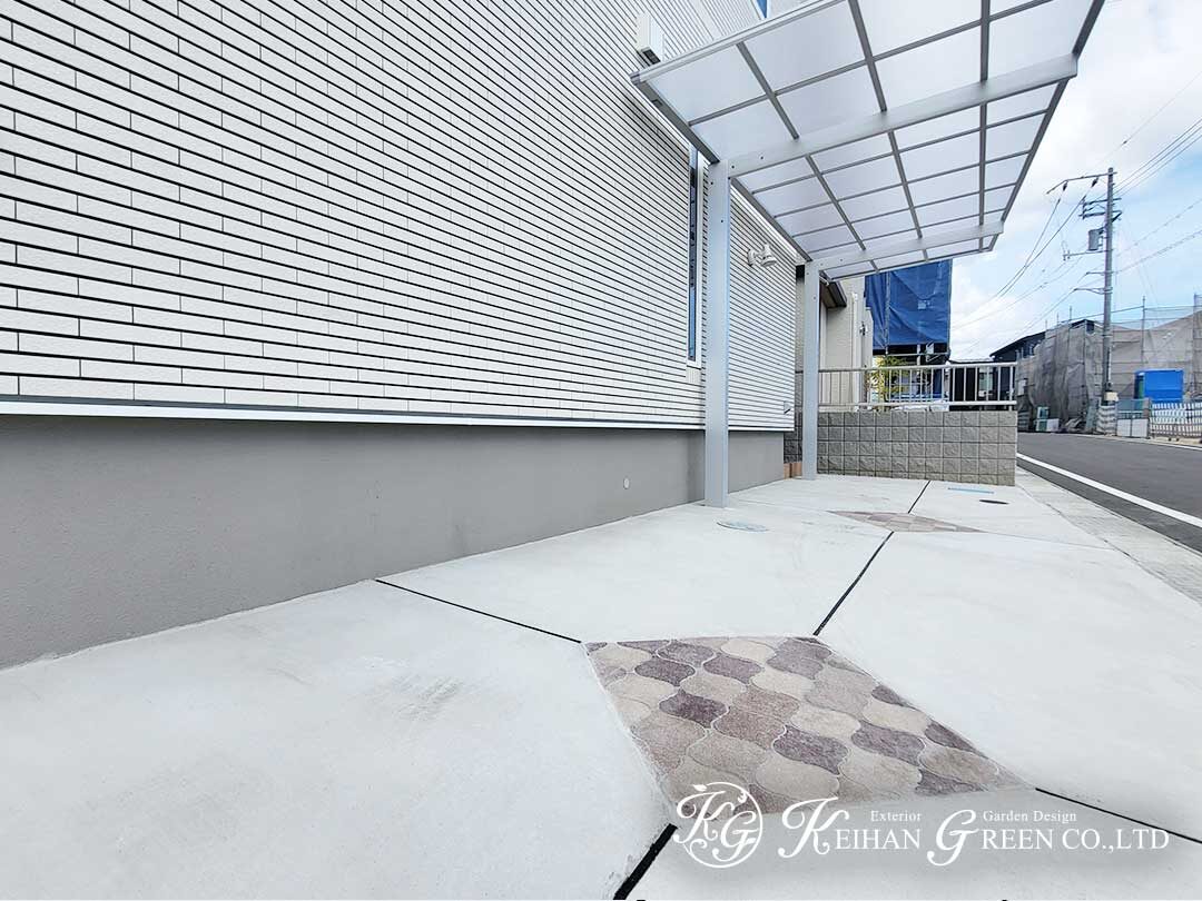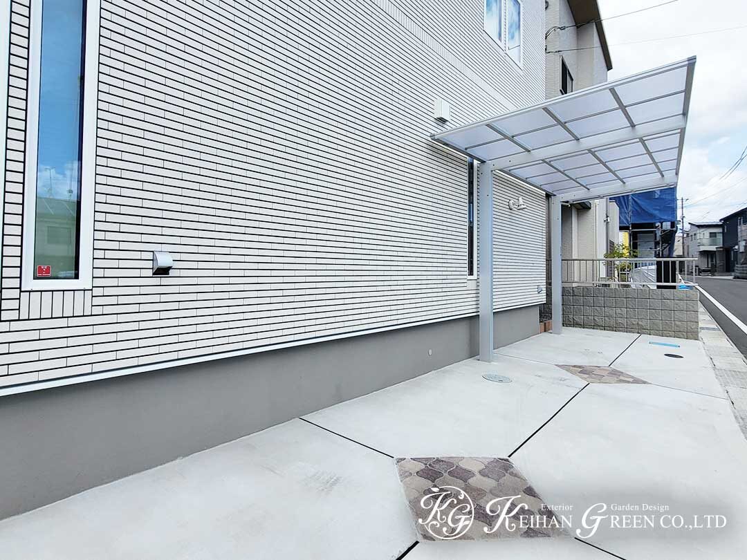 駐車スペースはコンクリートで仕上げ、部分的にインターロッキングを加えて温かみをプラス。