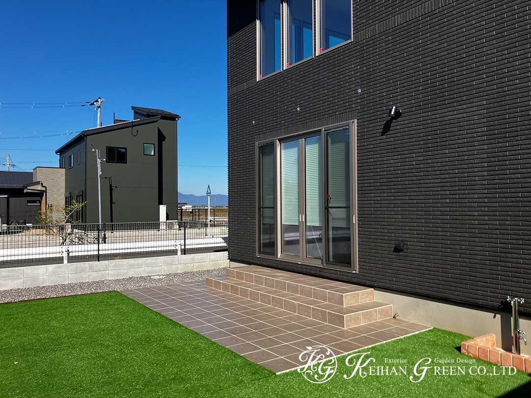 タイルデッキと人工芝でつくる、くつろぎのプライベートガーデン