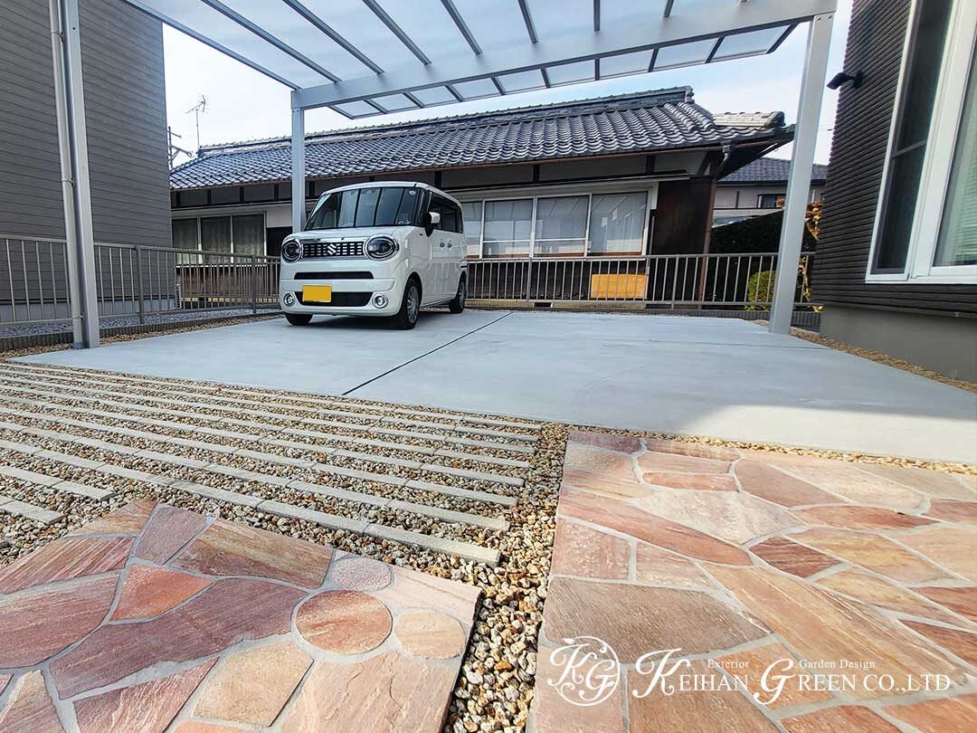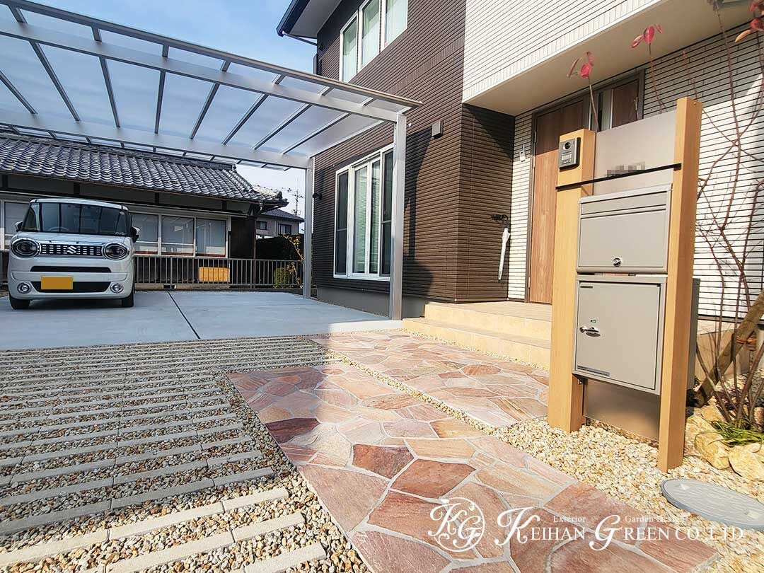 今回は、カーポートとアプローチを主役に、すっきりとした中に温かみを添えた新築外構をご紹介します。