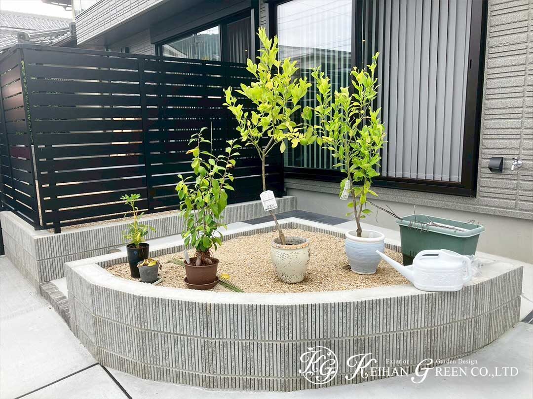 植栽スペースには家庭菜園や鉢植えも楽しめる余白を残し、暮らしに合わせて成長していける新築外構となりました。