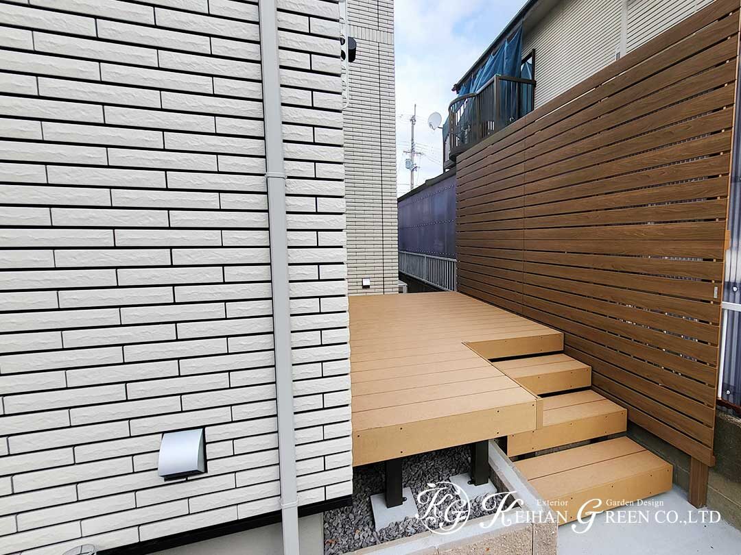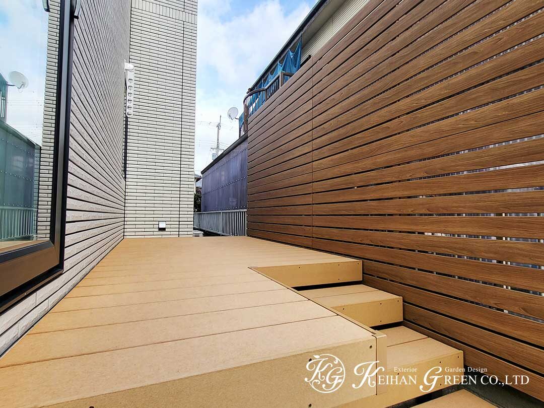 木目×ブラックの統一感+ウッドデッキと目隠しで“暮らし”まで整える