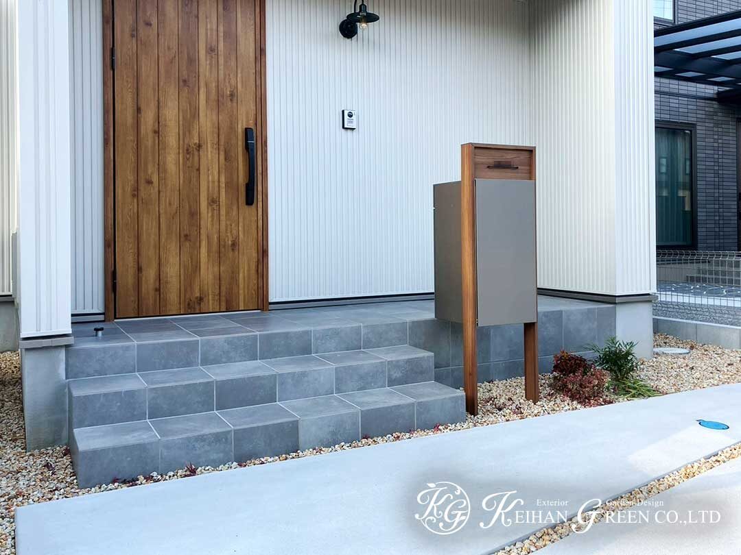 駐車スペースをすっきり見せながら、玄関まわりの印象も軽やかに整えています。