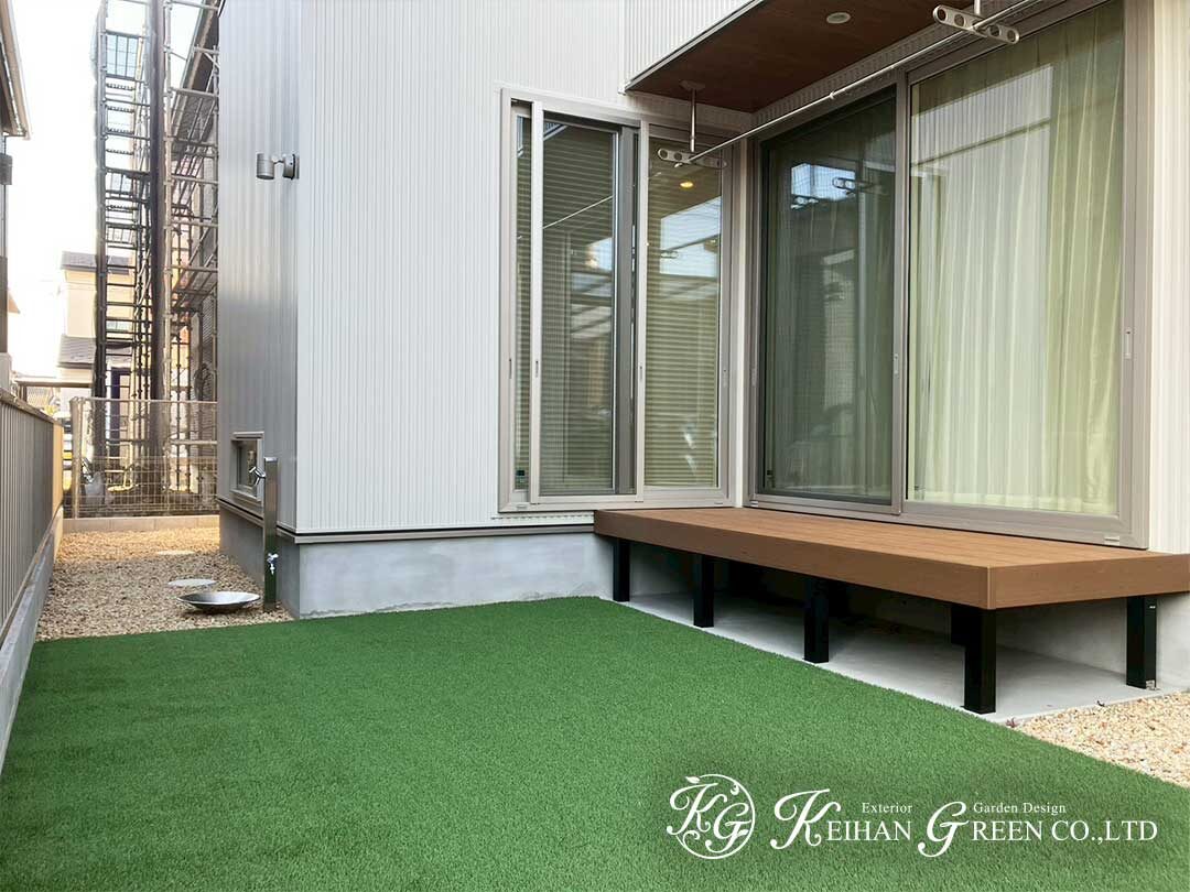 人工芝+ウッドデッキで、外に“ちょっとくつろげる場所”を